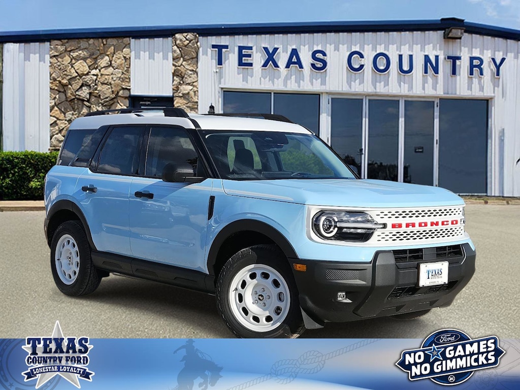This beautiful Robins Egg Blue 2025 Ford Bronco Sport Heritage located at Texas Country Ford has been thoroughly inspected by our certified Ford factory-trained service technicians, and ready for immediate delivery.