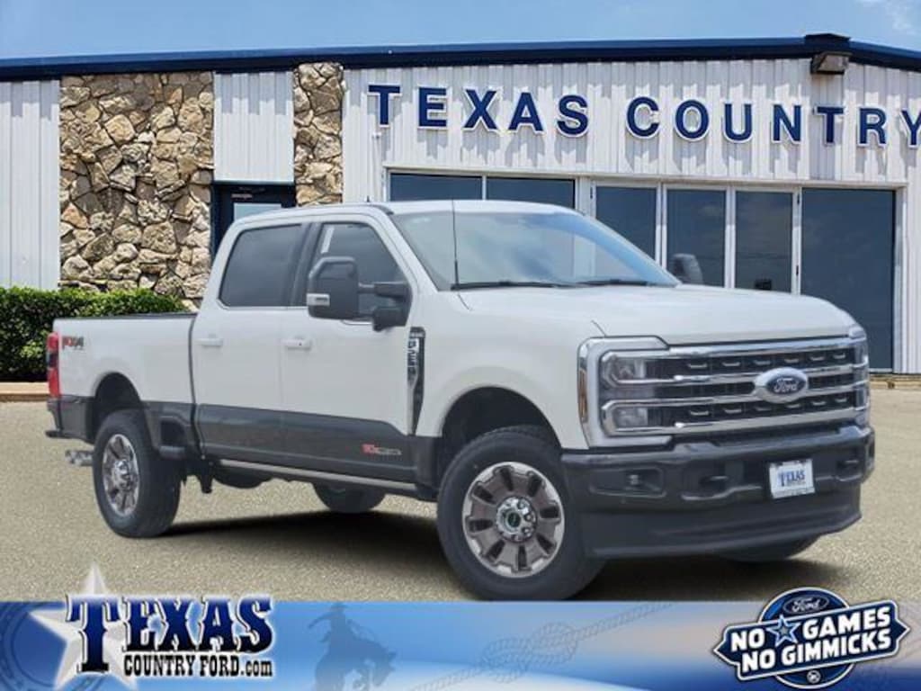 This beautiful Star White Metallic Tri-Coat/Darkened Bronze 2025 Ford Super Duty F-250 SRW King Ranch located at Texas Country Ford has been thoroughly inspected by our certified Ford factory-trained service technicians, and ready for immediate delivery.