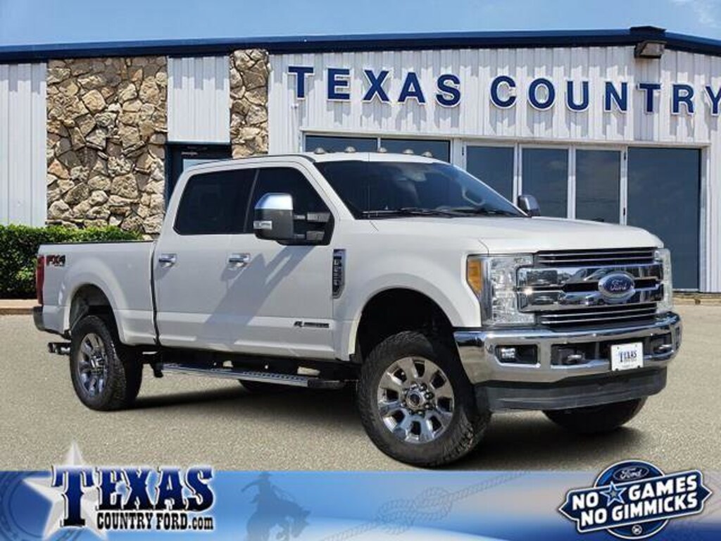 This beautiful White Platinum Metallic Tri-Coat 2017 Ford Super Duty F-250 SRW Lariat located at Texas Country Ford has been thoroughly inspected by our certified Ford factory-trained service technicians, and fully reconditioned for immediate delivery.